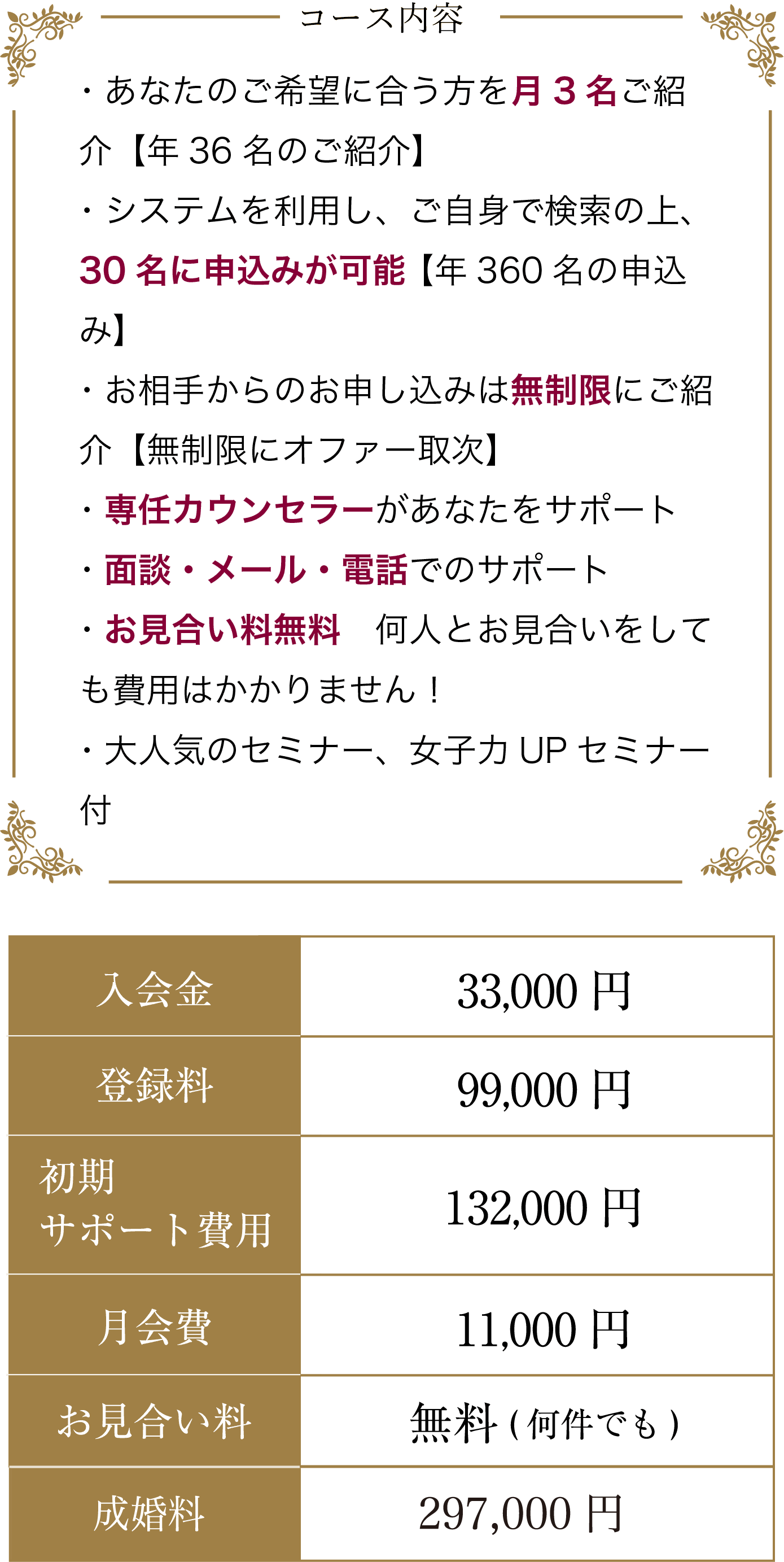 - ・あなたのご希望に合う方を月3名ご紹介【年36名のご紹介】