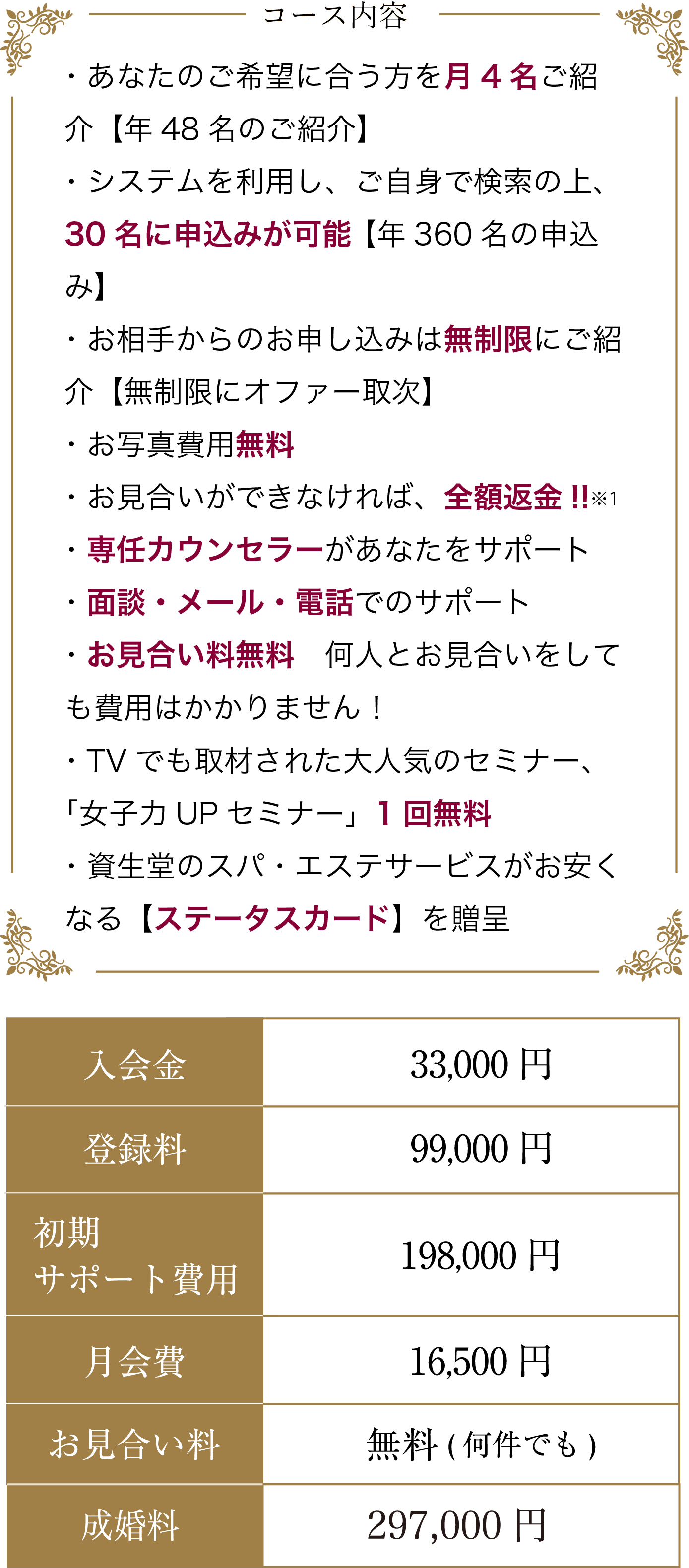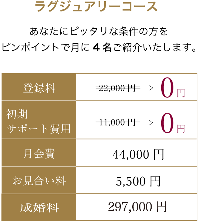 - ・あなたのご希望に合う方を月4名ご紹介【年48名のご紹介】