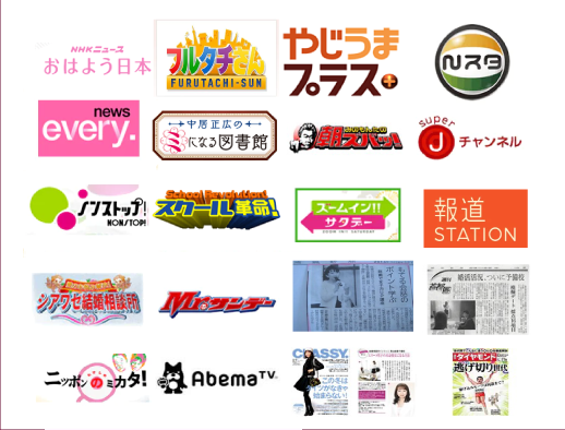 手厚いお世話により成婚率が高いということで、TV・新聞・雑誌・ラジオなど、様々なメディアに取り上げていただいています。また、全国の地方自治体やNPO法人などから、どうしたら結婚できるかなどについて、講演・セミナーなどを依頼されています。