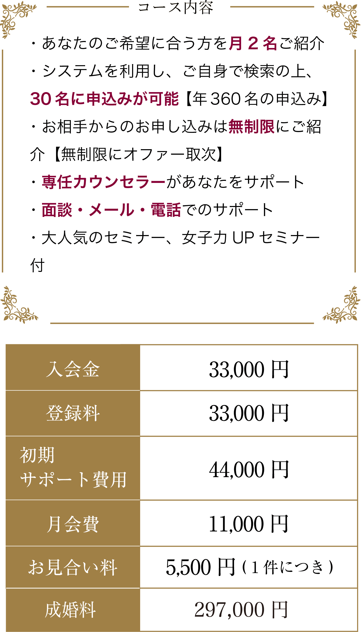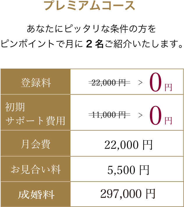 - ・あなたのご希望に合う方を月2名ご紹介【年24名のご紹介】